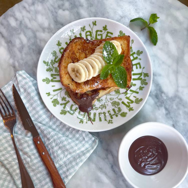 Crousti-fondante, généreuse, et twistée avec une pâte à tartiner bio, des rondelles de banane et une pointe de menthe fraîche. Une création ultra régressive, pensée pour les citadins qui savent que le petit-déj mérite mieux qu’un café sur le coin du bureau.