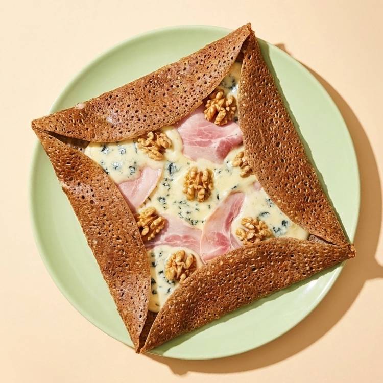 À mi-chemin entre tradition bretonne et audace fromagère, cette galette joue la carte du caractère.