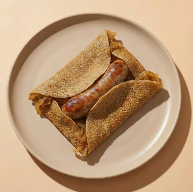 La galette saucisse, c’est le chic rustique breton : une saucisse bien grillée, une galette de sarrasin souple, rien de plus. Chez Mon Marché, on respecte la tradition, produit net, goût franc, plaisir immédiat. Simple, iconique, indémodable.