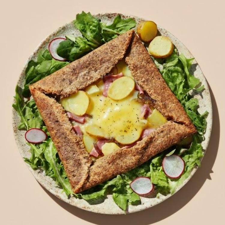 Quand la Bretagne s’inspire des Alpes, ça donne une galette audacieuse, généreuse et ultra savoureuse. Sur une galette de sarrasin bien chaude, on dépose des Pommes de terre fondantes, des lamelles d’Oignon doré, de belles tranches de Reblochon coulantes et une fine tranche de Jambon cru. Un vrai plat de terroir, à déguster les soirs où vous avez envie de quelque chose de bon, de chaud… et de très fondant.