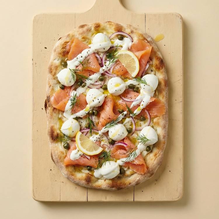 Cette recette a l'élégance de la Scandinavie et la simplicité d’un dîner improvisé réussi. La pâte à pinsa, moelleuse et croustillante, devient le socle parfait pour accueillir le moelleux du saumon fumé, le peps d’une crème citronnée et le croquant des câpres. Chez Mon Marché, on mise tout sur la qualité : un saumon fumé aux notes subtiles, une mozzarella râpée fondante, et un aneth ultra-frais qui fait toute la différence. À déguster avec une salade de roquette ou une purée douce et onctueuse. Parfaite pour un plateau télé soigné ou un déjeuner sur le pouce qui en jette. Et si vous avez des restes ? Emballez-la, elle fera sensation en lunchbox.