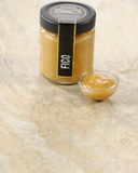 Nappez la pâte de sauce tomate jaune et ajoutez un peu d’huile d’olive. Faites cuire, dans la partie basse du four, pendant 8 minutes.