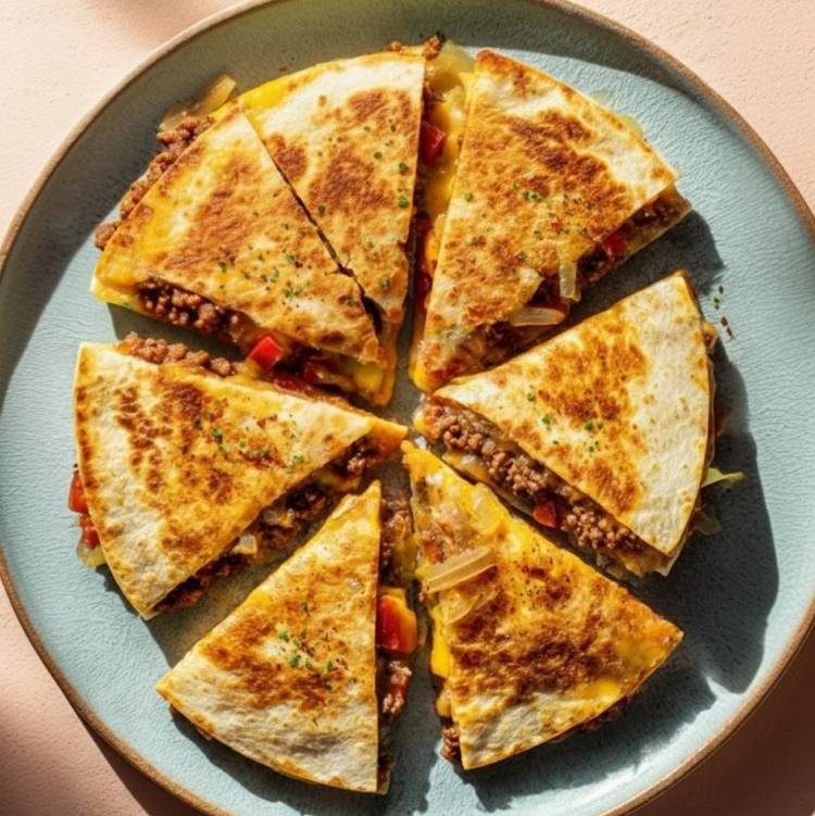 Servez sans attendre : découpez chaque quesadilla en triangles réguliers. Disposez-les sur une planche ou une assiette, accompagnez d’une cuillère de Guacamole prêt à consommer. À picorer du bout des doigts, sans modération.