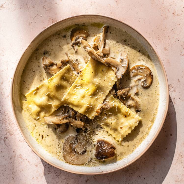 Pleurotes, champignons de Paris sont dosés avec précision pour une texture généreuse sans lourdeur. Le bouillon crémeux est relevé d’un miso, blanc ou brun selon l’envie, pour une profondeur subtile et très Mon Marché.