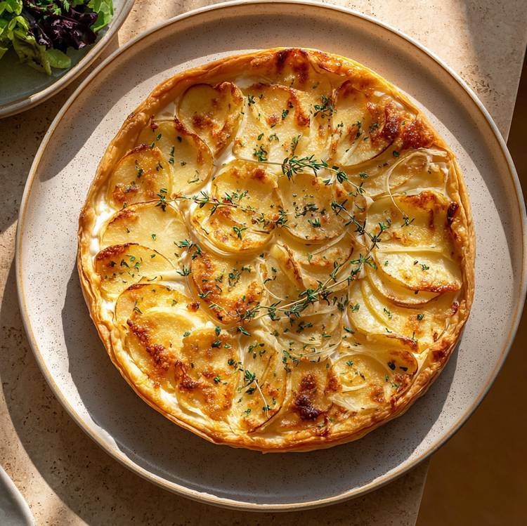 Entre fondant, croustillant et caractère, cette tarte fine aux pommes de terre et au morbier sent bon le chalet et les tablées réconfortantes. En quelques gestes simples et des ingrédients bien choisis, vous obtenez une recette à la fois généreuse et élégante, à partager avec ceux qui aiment les plats francs et bien faits. Le parfum du thym, la douceur de l’oignon, la richesse du fromage : tout est réuni pour faire de cette tarte un moment fort de votre dîner.