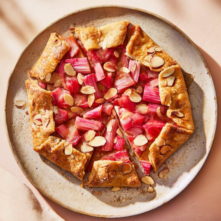 Quand la rhubarbe déjà cuite révèle toute son acidité douce, elle rencontre une crème d’amande moelleuse et une pâte dorée repliée à la main. Une tarte simple, un peu bohème, comme sortie d’un four de campagne.
