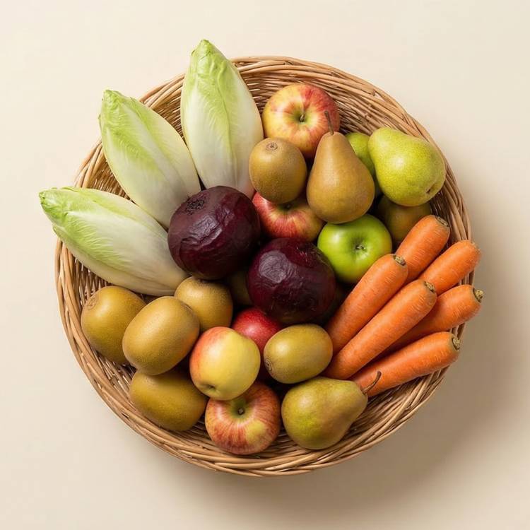 Des fruits et légumes bio, frais et pleins d’équilibre… Cette panière réunit le meilleur du sucré et du végétal pour varier les plaisirs au fil de la semaine. Entre les kiwis jaunes délicatement parfumés, les pommes croquantes et les poires juteuses, la touche fruitée apporte fraîcheur et gourmandise. Côté légumes, les carottes croquantes, les endives légèrement amères et la betterave cuite tendre et douce se prêtent aussi bien aux salades qu’aux plats réconfortants.
