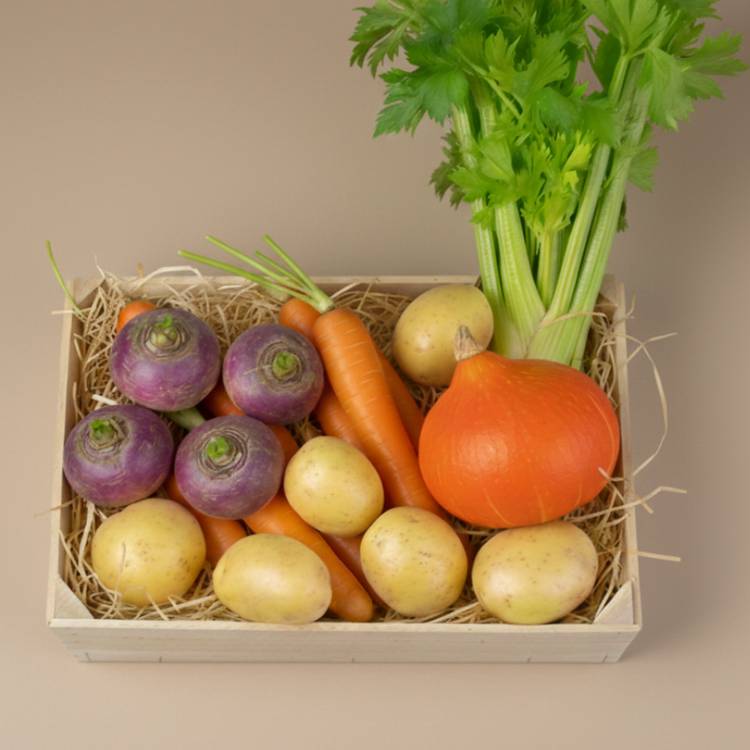 Cueillie comme à la ferme, livrée comme à Paris. Cette panière de légumes bio de saison coche toutes les cases : Potimarron tout en rondeur, Navet violet légèrement sucré, Carotte croquante, Céleri branche vif et Pommes de terre grenaille à la peau fine. C’est beau, c’est frais, et c’est prêt à tout : velouté du dimanche soir, légumes rôtis sans forcer ou simplement fiers dans une corbeille sur le plan de travail.