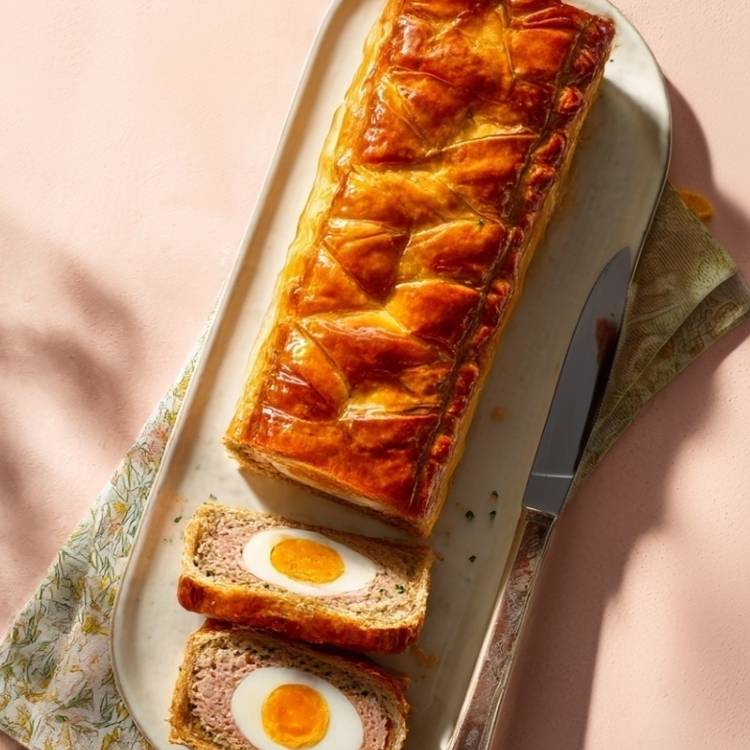 Dans l’Ouest, il marque le retour des beaux jours et des tablées généreuses. Sa pâte dorée cache une farce rustique et des œufs entiers, clin d’œil festif.