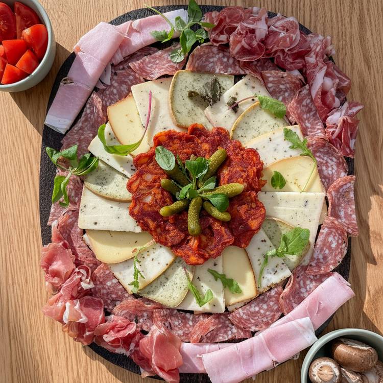 Fini les plateaux raclette tristounets. Ici, on parle d’une version premium qui envoie du lourd : truffe, chorizo ibérique, coppa de Parme, culatello... Le genre de raclette qui fait frémir les papilles et claque sur la table comme une belle bouteille le vendredi soir. Le mix des fromages : entre ail des ours, moutarde et nature gourmande, vient équilibrer la générosité des charcuteries haut de gamme. Et côté légumes ? Des pommes de terre bien fermes, quelques champignons, tomates et jeunes pousses pour jouer les alibis healthy.