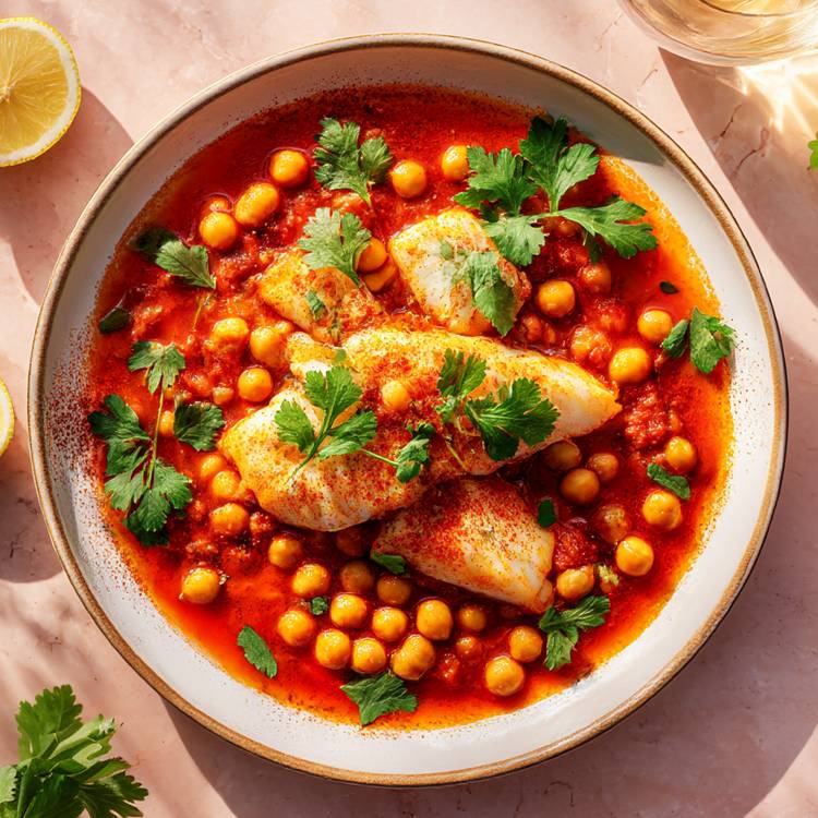 Un plat qui sent bon les souks et les retours de marché. Le poisson mijote doucement dans une sauce tomate parfumée au cumin, au paprika et au curcuma, relevée d’herbes fraîches.