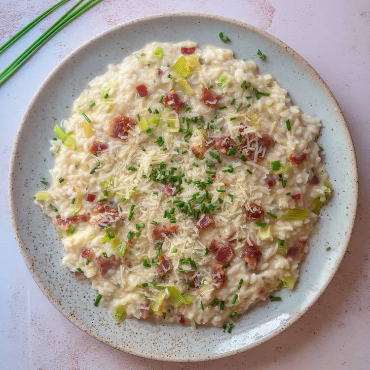 Quand un risotto crémeux rencontre la générosité du Cantal AOP et le fumé des lardons, ça donne un plat de terroir avec du caractère. Le poireau et l’ail viennent adoucir le tout, pendant que la ciboulette joue les chefs d’orchestre de la fraîcheur. Ce risotto auvergnat, c’est la promesse d’un dîner confort sans chichi, mais avec beaucoup de goût. Idéal pour transformer un mardi soir en escapade gourmande.