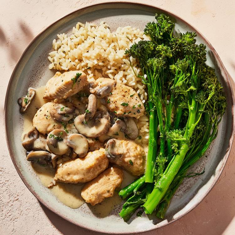 Construire une sauce pleine de goût : Dans la même cocotte, faites suer l’oignon émincé et l’ail haché 5 min. Ajoutez les champignons émincés, laissez cuire 7 min. Diluez le cube de bouillon dans l’eau chaude, versez dans la cocotte pour déglacer, puis laissez réduire 5 min à feu moyen.