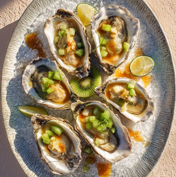 On connaît l’huître citronnée classique, mais ici, on sort du sentier battu avec un twist à la fois piquant et fruité. Le kiwi apporte une douceur végétale inattendue, le gingembre éveille les papilles, et le vinaigre de riz équilibre l’ensemble avec délicatesse. Résultat : une bouchée ultra fraîche, un shot de vitalité en pleine mer. À servir bien frais pour une entrée qui a du panache… et qui en jette.