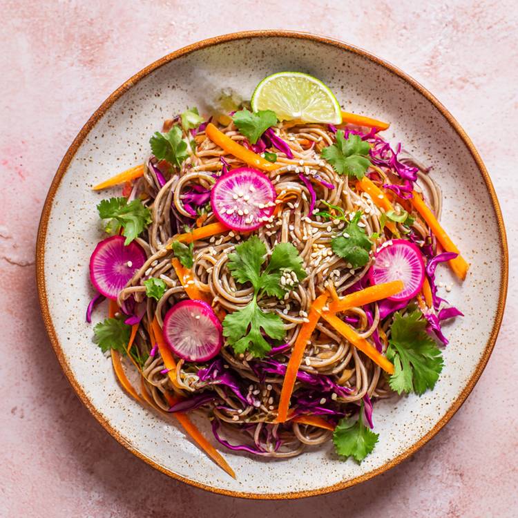 En moins de 20 minutes chrono, offrez à vos papilles une escapade nippone. Les nouilles soba, riches en sarrasin, s’enrobent ici d’un méli-mélo de légumes ultra croquants, d’une vinaigrette au sésame toasté et d’un zeste de citron vert pour le twist. Le genre de plat qui coche toutes les cases : rapide, équilibré, stylé. Une assiette pleine de couleurs, qui se prépare les yeux fermés mais se savoure les yeux écarquillés.