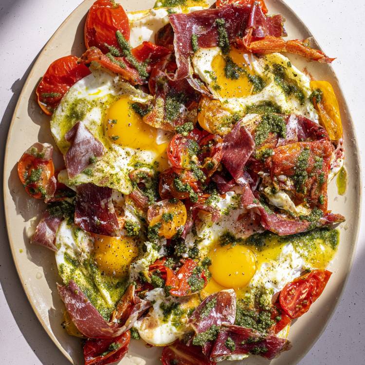 Voici une recette qui coche toutes les cases du « pas le temps, mais envie de bien manger ». Des œufs mollets fondants, des tomates Roma rôties au four, une cuillère de pesto pour le soleil, quelques tranches de bresaola pour la touche salée. Le combo gagnant, prêt en 15 minutes top chrono, à servir aussi bien en brunch qu’en dîner léger.