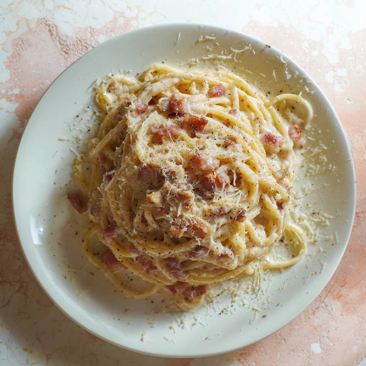 Enrobez hors du feu pour une sauce soyeuse : Incorporez les spaghetti chauds aux lardons, retirez du feu puis versez la sauce en mélangeant vivement 1 à 2 min pour qu’elle nappe les pâtes sans coaguler. Ajustez avec un peu d’eau de cuisson si nécessaire et servez aussitôt.